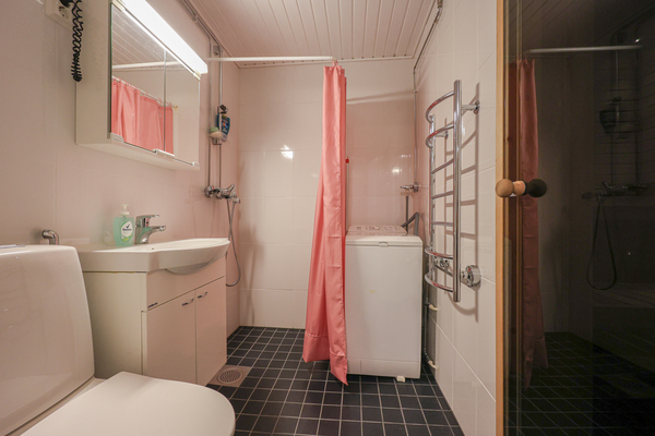pesukoneliitäntä, wc-istuin, suihku, peilikaappi