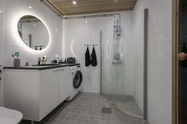 pesukoneliitäntä, lattialämmitys, wc-istuin, suihku, peili