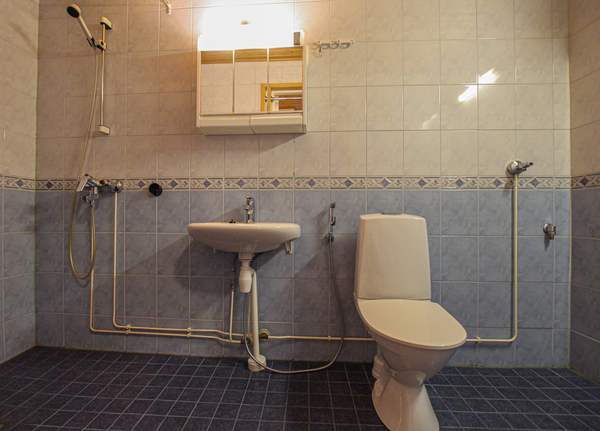 pesukoneliitäntä, lattialämmitys, wc-istuin, suihku, peilikaappi
